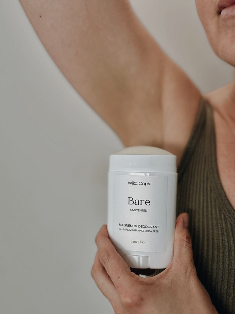 Bare is a truly unscented, essential oil–free, magnesium + prebiotic-based deodorant that offers reliable odor protection and microbiome support without irritating or overwhelming your skin. With no fragrance and no fluff, it’s just clean ingredients that work.