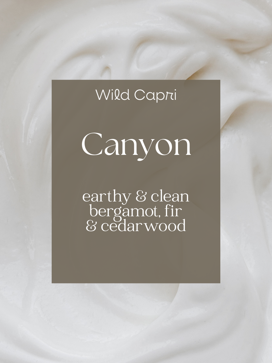 Canyon blends earthy and woodsy. A rugged blend of cedarwood, fir, and bergamot that feels like a walk through the trees at dusk.