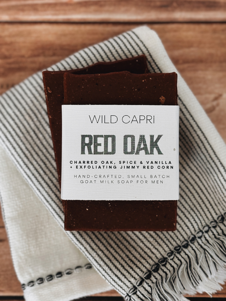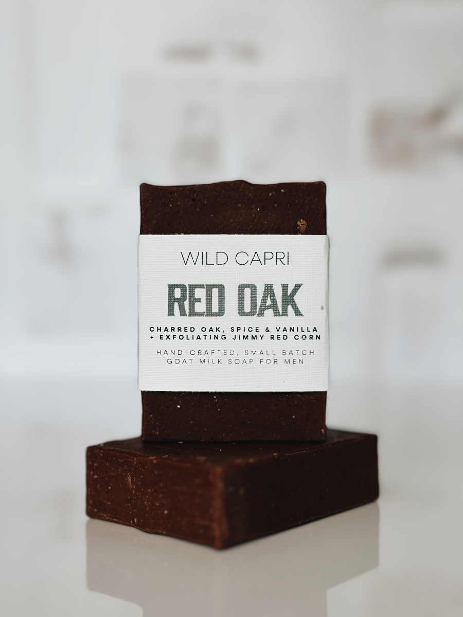 Just the right amount of rugged—Red Oak is a deep cleansing bar soap made with heirloom Jimmy Red Cornmeal & pumice for satisfying texture and natural exfoliation. The scent is bold and familiar, with deep oak, comforting vanilla and a spark of spice.